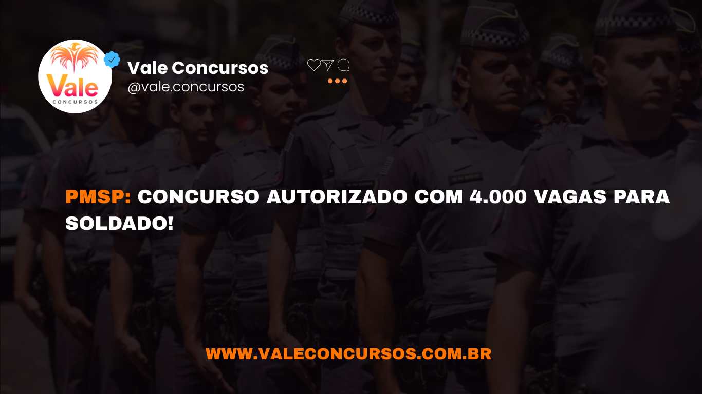 Novo concurso PM SP é autorizado com 4 mil vagas para soldados Foi autorizada a abertura de um novo concurso público para a Polícia Militar de São Paulo, com a
