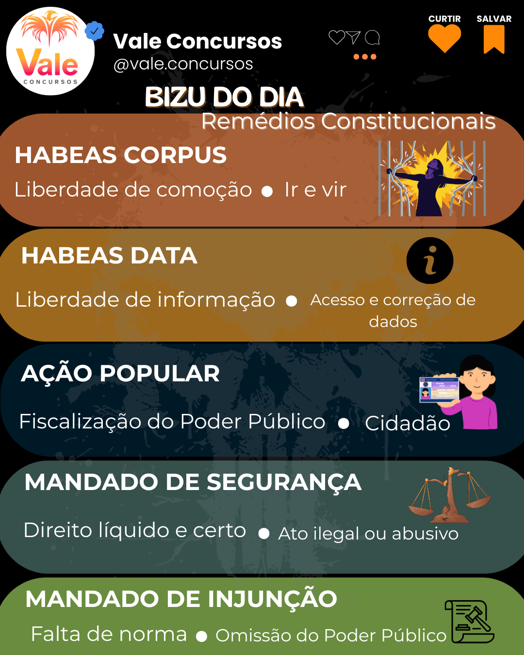 Associe cada remédio constitucional à sua finalidade principal e acerte mais rápido na questão. 🚨 Dica de prova: 👉Liberdade de locomoção → Habeas Corpus (HC) 👉Acesso a informações pessoais →