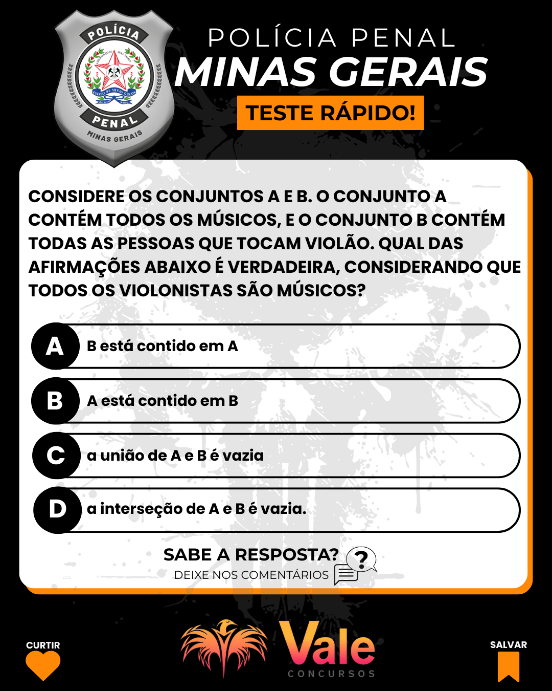 A questão apresentada trabalha um tema muito recorrente em concursos públicos, especialmente nas provas da Polícia Penal de Minas Gerais: lógica de conjuntos. Vamos à análise passo a passo. Enunciado