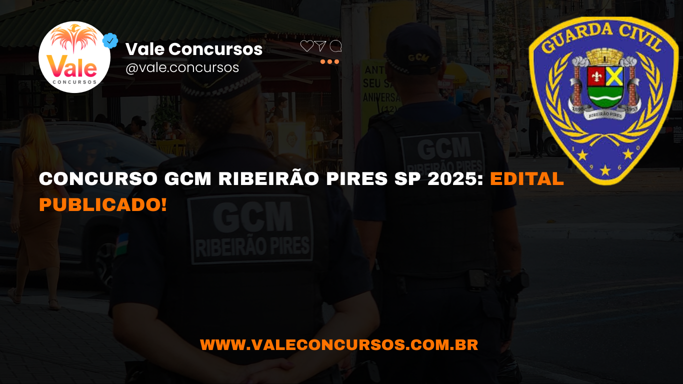 O município de Ribeirão Pires, em São Paulo, publicou edital para o concurso da Guarda Civil Municipal (GCM) com 20 vagas imediatas. A seleção já está com inscrições abertas e as provas objetivas serão aplicadas em 08 de fevereiro de 2026.